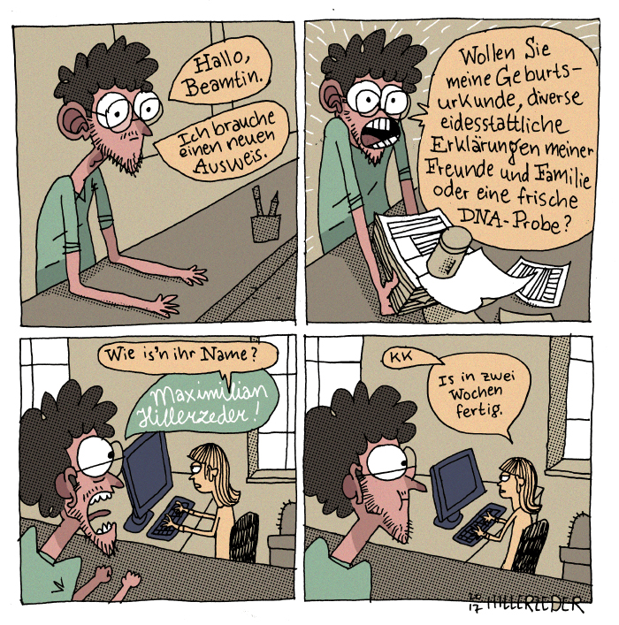 Habt ihr eigentlich schon mal euren Ausweis verloren? Mitsamt Führerschein und der Mitgliedskarte des Tigerentenclubs? Abgesehen von dem seltsamen Gefühl, irgendwie illegal unterwegs zu sein, war es auch eine erstaunliche bürokratische Erfahrung. Im Internet gelesen hatte ich, dass man sich in irgendeiner Form identifizieren muss, was ja nur logisch erscheint. Da aber nun tatsächlich alles weg war, habe ich mir also von meinen Eltern meine Geburtsurkunde schicken lassen und lebe nun in ständiger Angst vor Feuer und Wasser im Arbeitszimmer. Letztendlich wurde ich dann nach meinem Namen und einer Unterschrift gefragt und durfte mit einem vorläufigen Ausweis wieder abziehen. Meine Identität ist um einiges weniger Verschlusssache, als ich gedacht hatte. Ich war irgendwie enttäuscht.